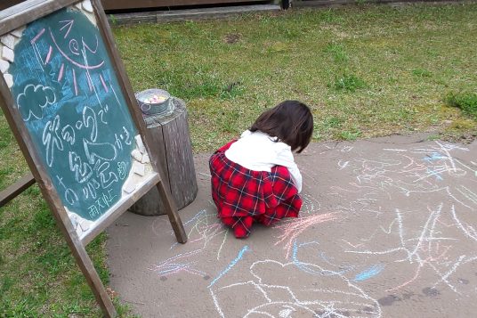 チョークを持ってお絵かきしよう!